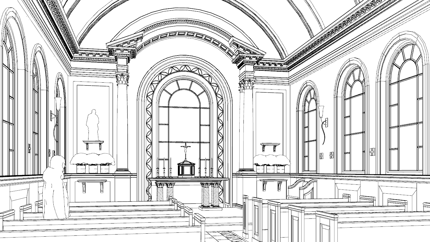 This private chapel project is currently in design. It has a capacity of 40 people, located in Illinois, and designed with a Classical Roman style.